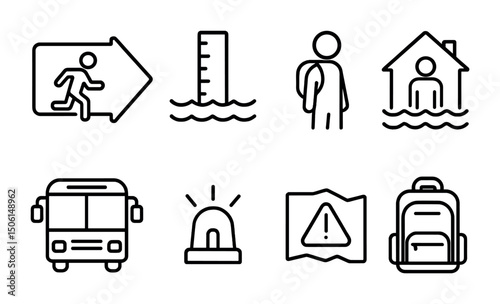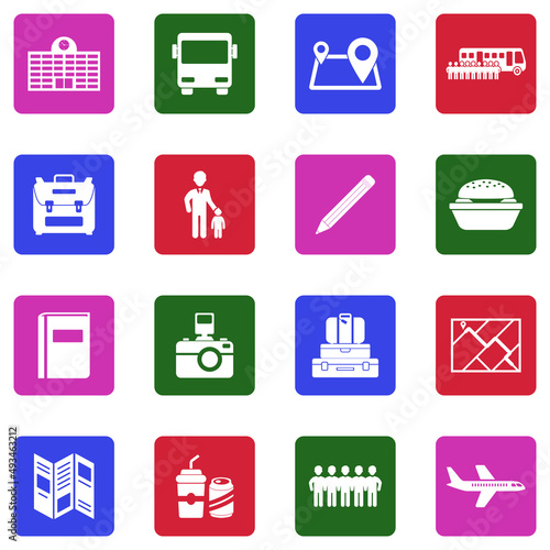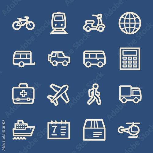 Travel and vacation line icons set. Vector illustration of holiday symbols and objects in flat style.
