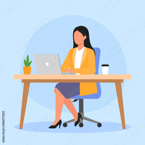 Young woman using laptop for booking flight tickets online, reserving hotel room, searching travel agency, vector flat illustration. Travel planning, summer vacation concept for website page etc.