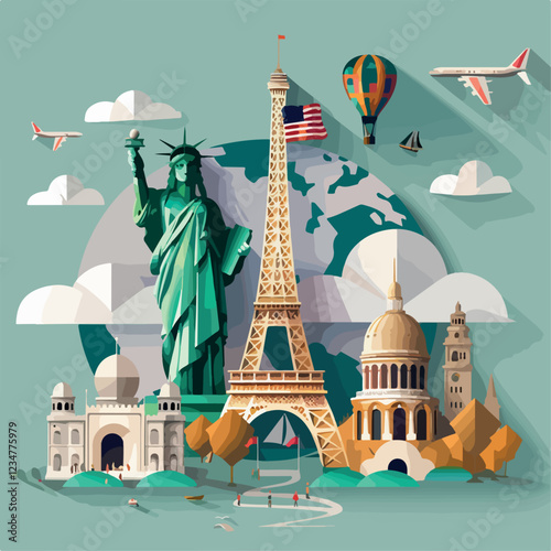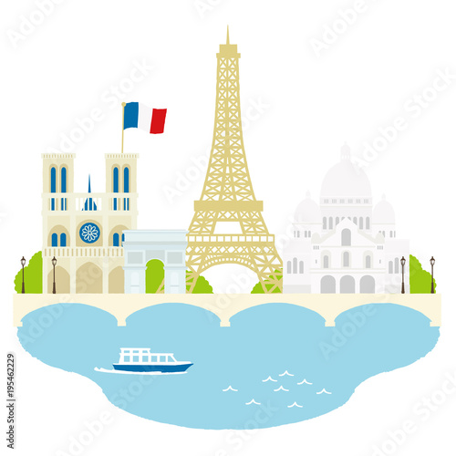 Paris attractions, world famous monuments and historic places silhouettes, vector illustration in paper art style. Travel to France composition for poster, banner etc.