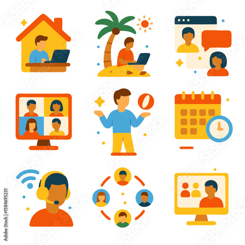 Traveler cartoon characters, flat vector isolated illustration. People traveling by plane, passenger and baggage screening procedures. Summer beach vacation. Yoga and meditation retreat. City travel.