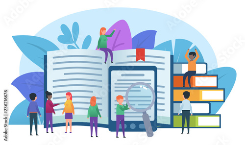 Travelers, tiny male and female characters making documents for leaving country, flat vector illustration. Tourists getting visa to travel abroad. Legal document to travel, immigration.