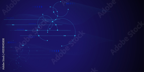 Vector polygonal art style treble clef with musical notes. Low poly wireframe mesh with scattered particles and light effects on dark blue background. Music poster banner template with copy space.