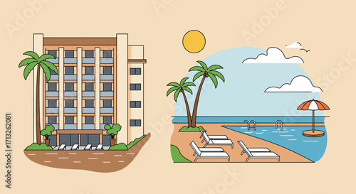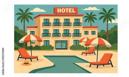 Vector illustration of woman sunbathing at resort swimming pool. Trip to Egypt concept flat style design element.