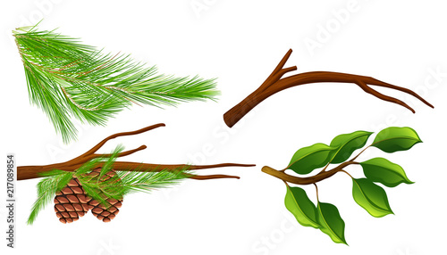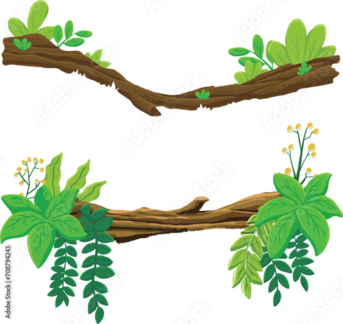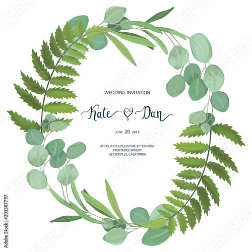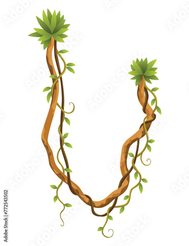 Tropical green plants leaves wreath vector icon isolated on white background.