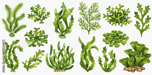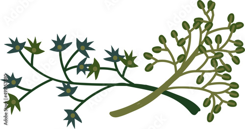 Tropical liana creeper plant decorative elements set, flat vector illustration isolated on white background. Hanging jungle vine brunches, climbing green plants, monstera frame.