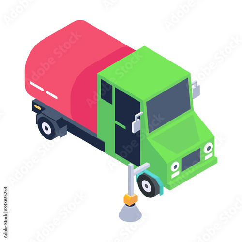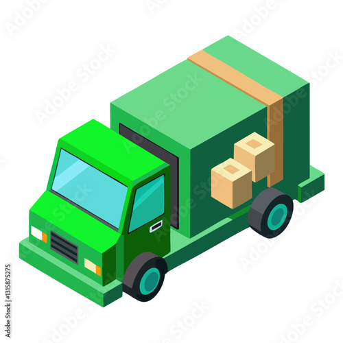Truck for waste recycle vector. Isometric rubbish disposal car. Green city dumpster with garbage trash container vehicle isolated on white background