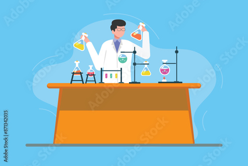 Tv breaking news with anchorman, flat vector illustration. The latest current news television program with presenter male cartoon character in studio. Live events, headlines, special report, newscast.