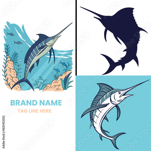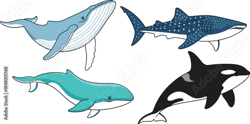 Two dolphins blue silhouette isolated on white background. Vector illustration design in paper cut style. Fish and underwater sea life double exposure.