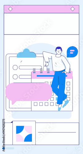 Two friends send messages to each other. People using messenger mobile phone apps. Vector web site design template. Landing page website concept illustration.