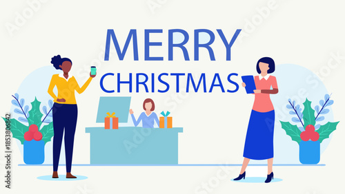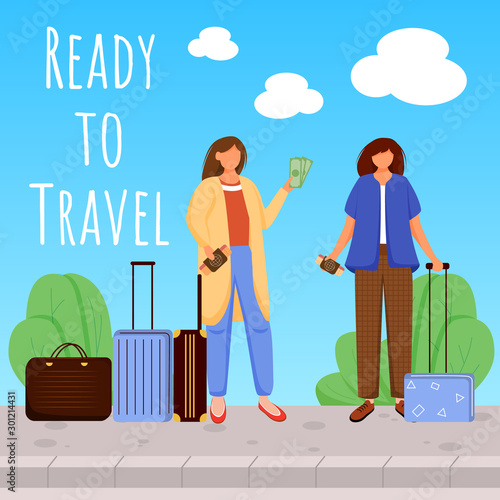 Two happy girls shopping together, flat vector illustration. Young women, best friends walking with bags full of purchases near fashion boutique, women clothing shop. Female friendship.