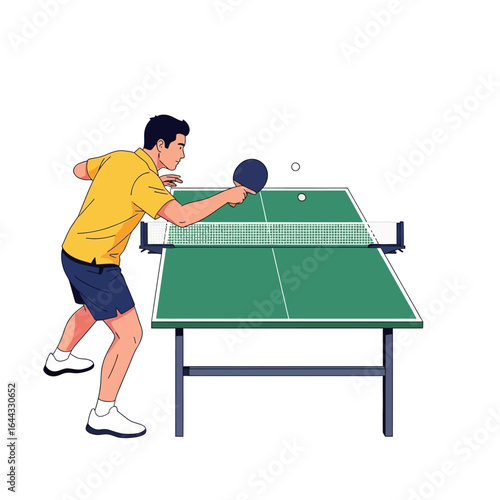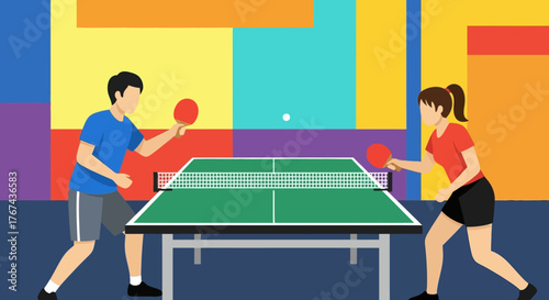 Two man playing ping pong game. Table tennis sport vector illustration. Indoor court for table tennis match.