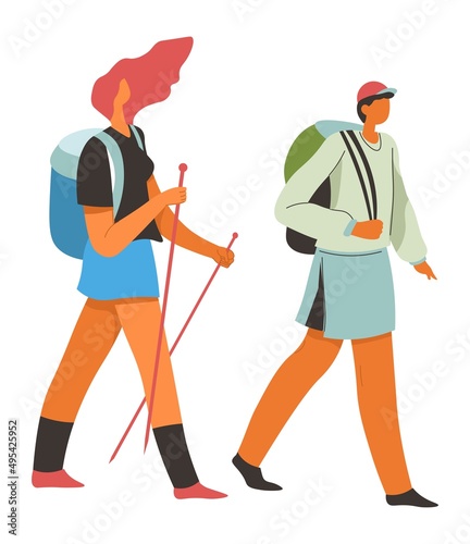 Two men climbers searching rout on paper map vector icon isolated on white background.