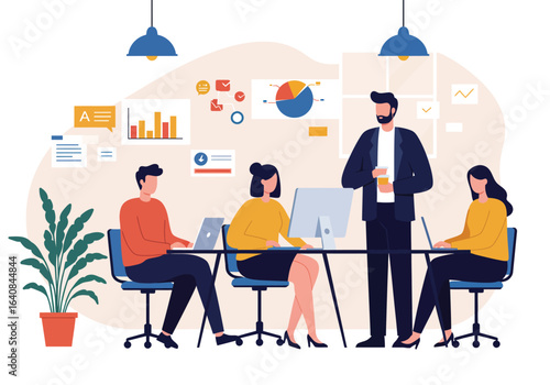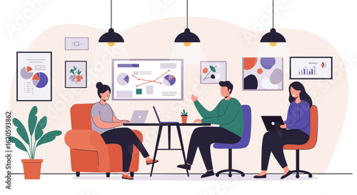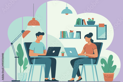 Two young men sitting at bar counter, talking and drinking beer after work, vector flat illustration. Happy male best friends meeting in cafe, beer pub. Man friendship, friday meeting.