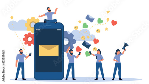 Typography services, vector illustration. Huge printer with paper, micro characters, offset printing inks or paints. Polygraphy, printing house, print shop concept for web banner, website page etc.