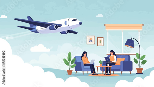 Unhappy family in polluted city with waste and power plant on background. Environmental pollution concept. Industry landscape. Vector web site design template. Landing page website illustration.