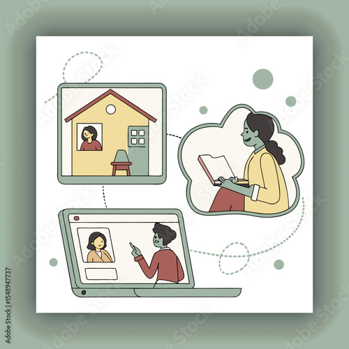 Young woman lying on bed alone holding smartphone and thinking about her boyfriend, flat vector illustration. Unhappy girl and her pet cat sleeping at her feet. Bedroom interior. Loneliness, divorce.