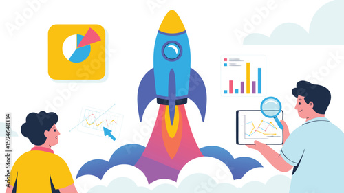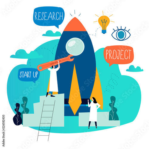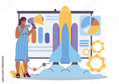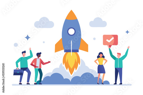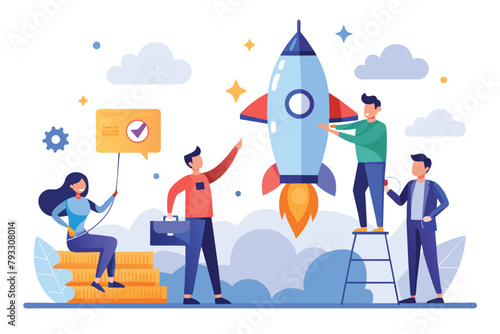 Successful businessman, unicorn horse, rocket take off, flat vector illustration. Unicorn company or startup. Venture capital industry.