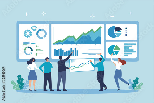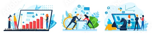 Unicorn horse coming out from smartphone and happy business people celebrating success, flat vector illustration. Unicorn company or startup, successful business.