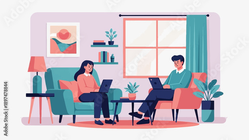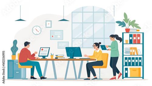 Vector illustration of students having lunch break. Canteen concept design element in flat style.