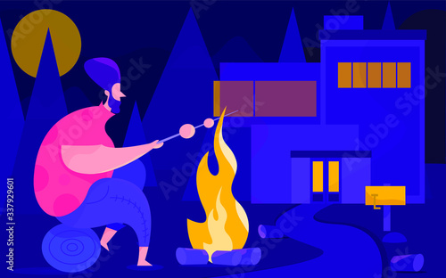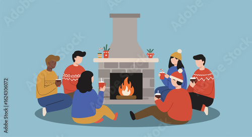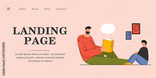 Vector illustration of university or college students relaxing in common room. Young people sitting on bean bag chairs and using gadgets. Flat style design.