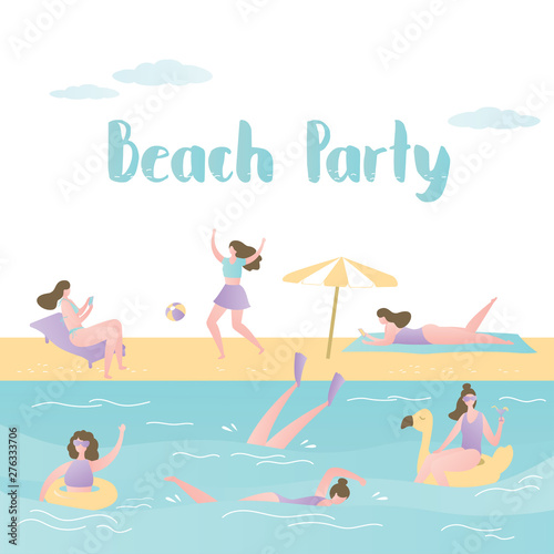 Vacation landing page design, website banner template set, flat vector illustration. Woman making sand mermaid. Beach accessories. Summer beach holidays.