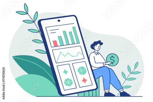 Vaccinated for Covid-19 traveler couple looking at huge smartphone with vaccine passport or certificate, flat vector illustration. Digital covid travel certificate.