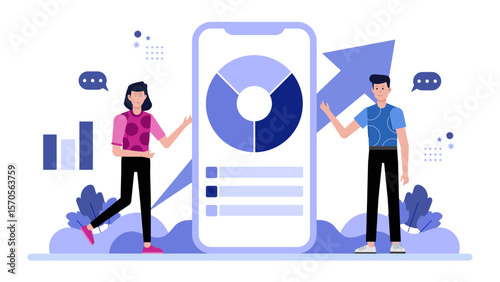 Vaccination and immunization, vector flat illustration. Doctor male holding syringe with injection and patient female refusing vaccine. Yes or no, the debate for and against vaccination concept.