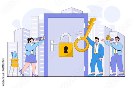 Vaccination for safety travel and access abroad scene. Vector illustration of man traveler with suitcase luggage and immunity passport on smartphone over huge vaccine health certificate
