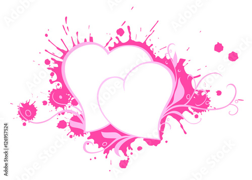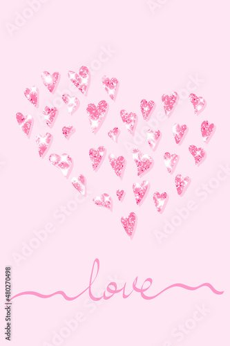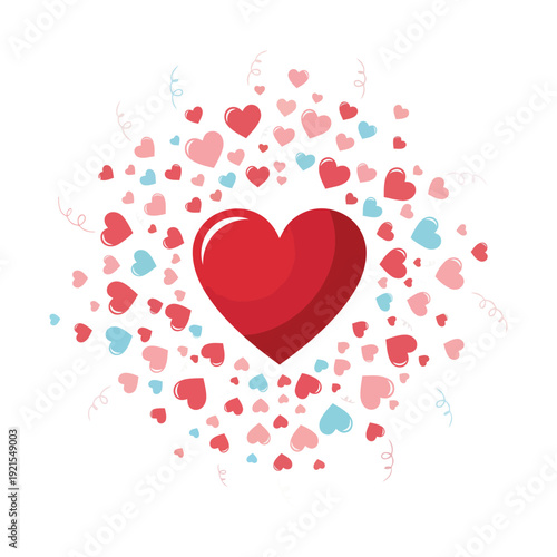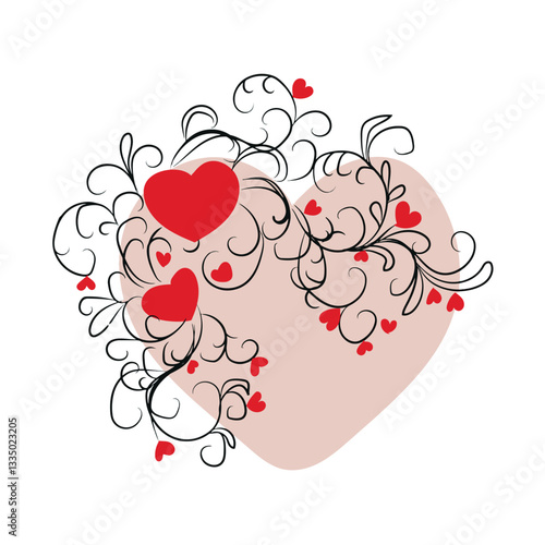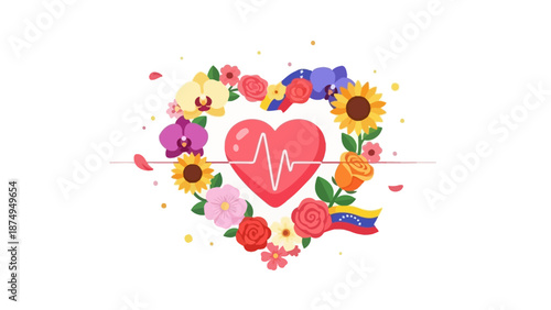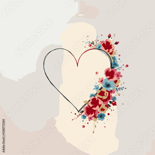 Layered paper cut heart with happy couple holding hands inside and beautiful flowers around it. Vector illustration in paper art craft style. Valentines Day greeting card template.