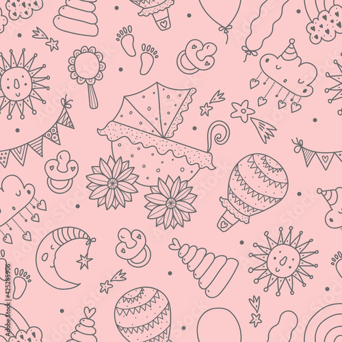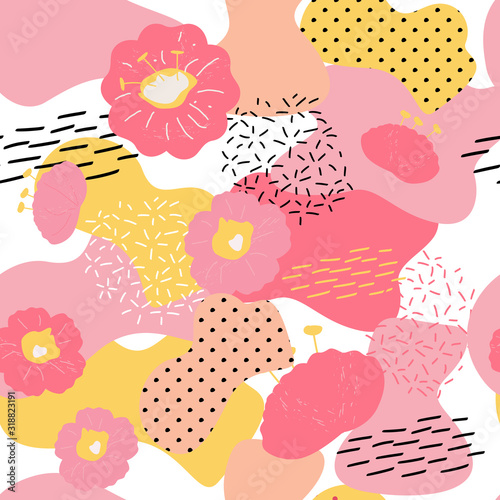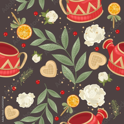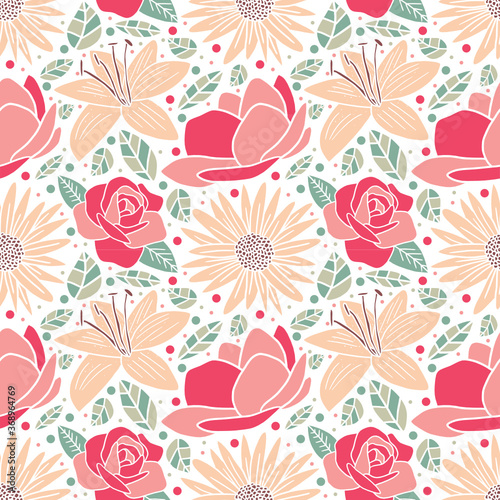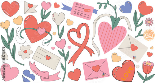Valentines day seamless pattern, vector illustration. 14 February Valentine day design decoration background with flowers, candy, letter.
