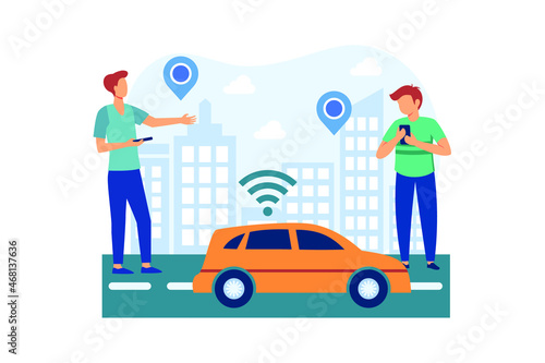 Vandals group destroying car vector icon isolated on white background