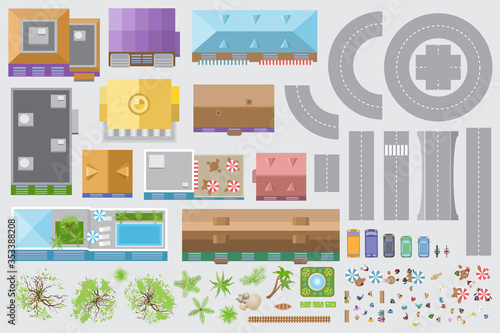 Different exhibit booths. Vector trade area interior, presentation showcase design. Travel, eco products and robotic technology exhibition illustration