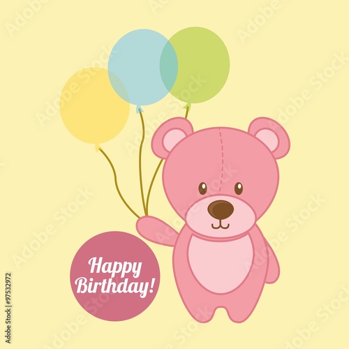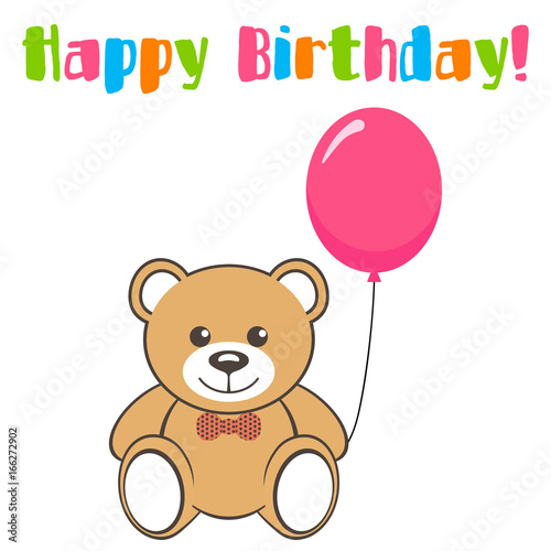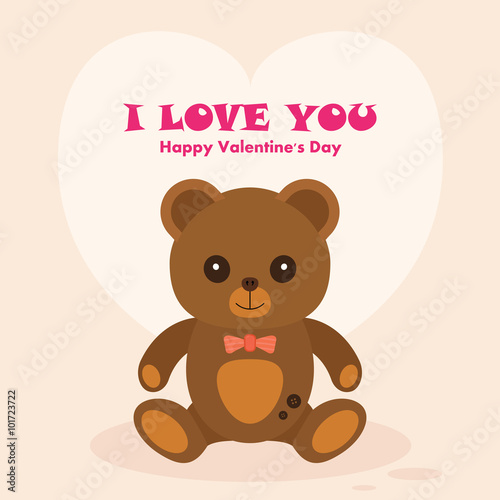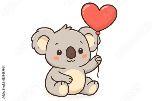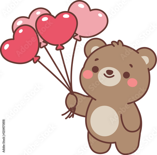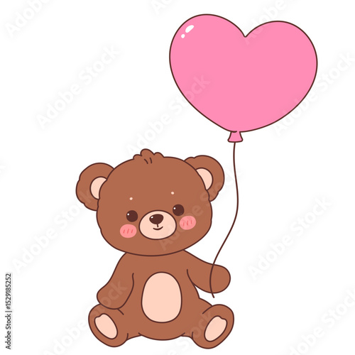 Animal with love vector. Teddy bear with heart shape air balloon icon illustration. Sweet happy character for valentine, birthday or wedding postcard romantic poster design. Isolated on white