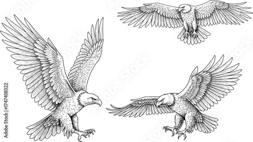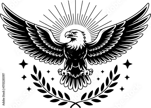 Vector raven bird tattoo or t-shirt print design. Sketch black raven with spread wings combined with nature, moon phases and boho elements.