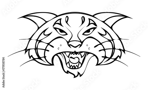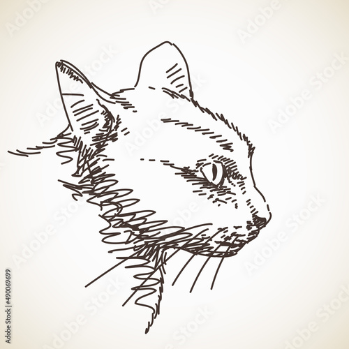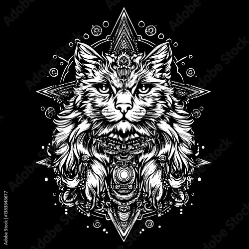Vector boho cat tattoo or t-shirt print design. Cat head on crescent moon combined with nature and boho elements.