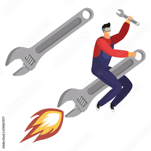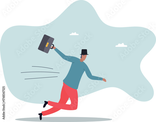 Vector businessman with briefcase running fast icon. Person in suit with suitcase late isolated on white background