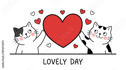 Animal with love vector. Cute cat jumping from gift box cartoon icon illustration. Sweet happy character for valentine, birthday or wedding postcard romantic poster isolated design on white background