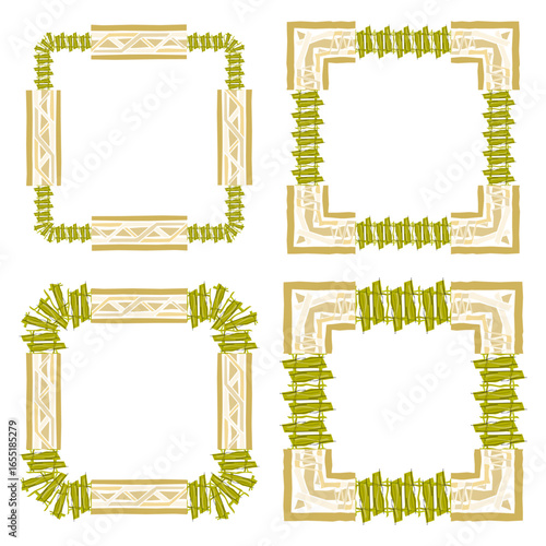 Vector climbing plants frame and creeper stand. Green liana and ivy decorative element set isolated on white background. Cartoon home and garden jungle illustration