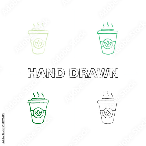 Vector coffee quote lettering on paper cup set. Calligraphy hand written phrases and sayings about coffee. Vintage creative typography design for coffee shops and print. Part 2.