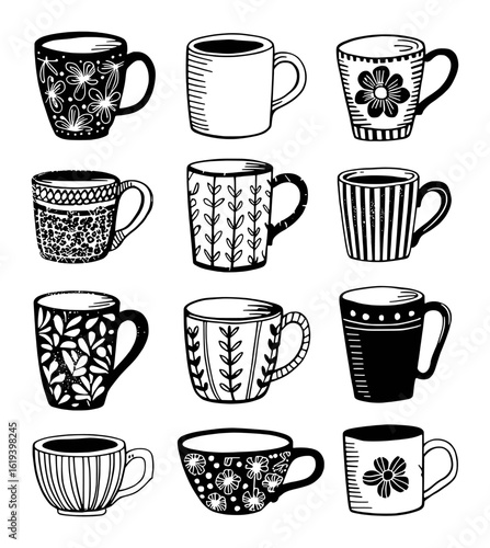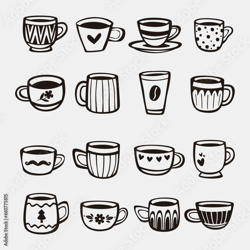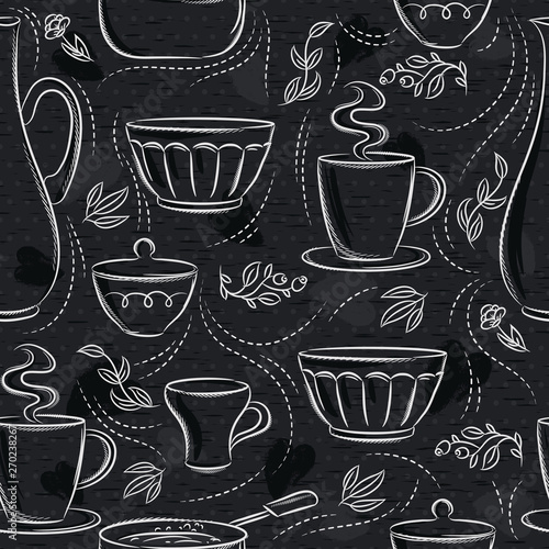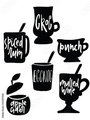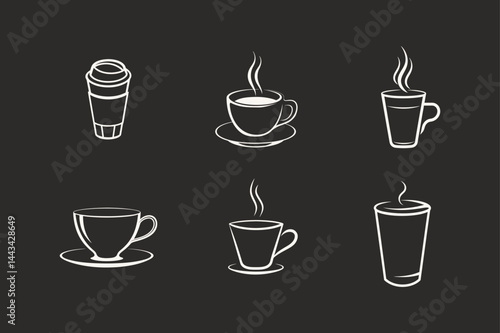 Vector coffee set with handwritten inspirational and funny coffee quotes and sayings. Vintage creative white on chalkboard typography design for coffee shop and print.
