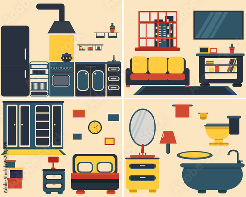 Vector commercial cleaning interior poster, banner set. Flat style design elements for cleaning company business advertising.