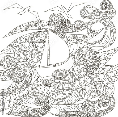 Whale tattoo art style. Vector geometric tattoo sketch. Vintage hand drawn compass rose and whale under ocean wave.