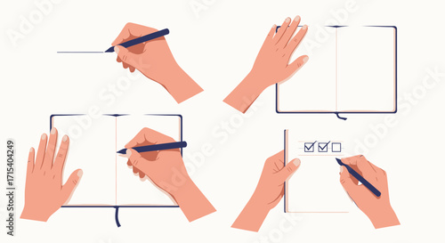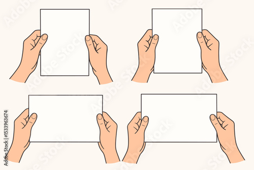 Vector human hand icon set. Female hand with card and thumb up, pointing finger, okay hand signs isolated on white background.