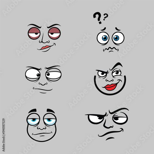 Red heart female character emoji maker, smiley creator. Vector set of emoticon face parts and accessories such as glasses, bow, flower for your own cool feminine heart emoji creation.