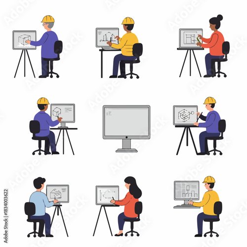 Vector icons set of workers profession people. Woodcutter, electrician, plumber, loader and gasman cartoon characters isolated on white background. Flat style design elements.