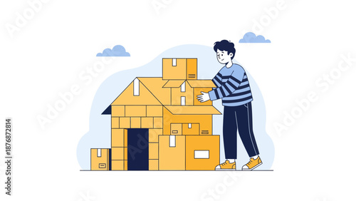 Vector illustration of beekeeper working on apiary. Apiculture concept design element in flat style.