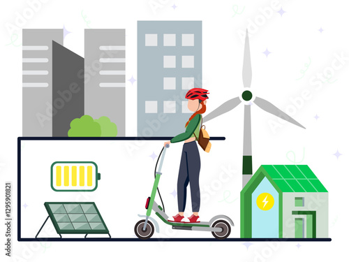 Vector illustration of cleaning woman doing the vacuuming with vacuum cleaner. Cleaning company services concept design element in flat style.