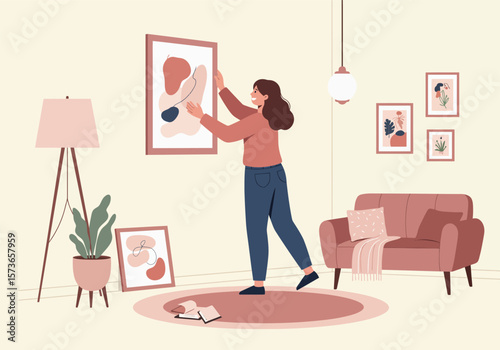Vector illustration of cleaning woman wiping dust from mirror. Cleaning company services concept design element in flat style.
