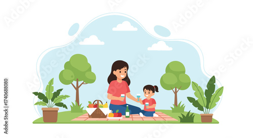 Paparazzi photographer young girl taking photo of famous person or people while lying on branch of tree. Vector flat style design illustration.
