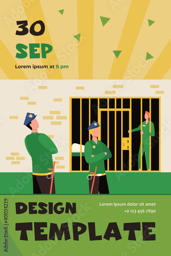 Vector illustration of policeman catching robber female in the act. Flat style design element.